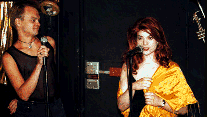 1997 Photos Below! Audiences witness the transformation of the two at their first meeting, the loss at their separation, and watch in satisfaction as they reunite to re-enact the resurrection passion play of Isis & Osiris, all in furtherance of their ultimate goal, a comfortable home within the exclusive, pearly gated community of the Ordered World. On July 13, 1997, Prepare to Meet Your Maker returned to SideWalk to celebrate its eighth performance. The following photos of the show are by Fort photographer Bob Strain. The performers include Peter Dizozza, Erika Bell, Jamie Cosnowsky, Charles Herold, Kerrigan Webb and Debra Wakefield.