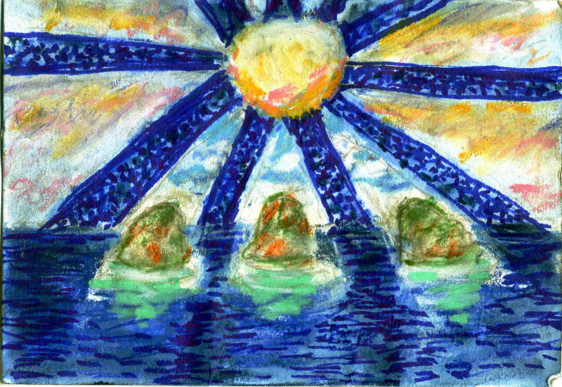 The postcard by Sam Moree that he and Sarah enlarged to create the canvas backdrop for the play.