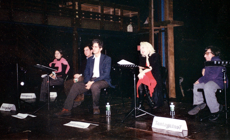 La MaMa e.t.c. presents EXPERIMENTA! A FESTIVAL OF PLAYS Celebrating 10 Years of La MaMa's Play Reading Series. Directed by George Ferencz. Costumes by Sally Lesser, Lights by Federico Restrepo, Scenic Art by Mark Kehoe, Sound Design by Tim Schellenbaum, Production Management by Juile Rosier, Press Representative Jonathan Slaff. TentagatneT Script and Score by Peter Dizozza. Cast: Dot: Leslie Ann Hendricks, Gormin: John Andrew Morrison, Orma: Sonja Perryman, Joralmon: Chris Zorker, Guy: Sarah Ford, Gary: Ulrich Flada.